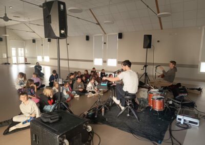 En janvier, le groupe Aman Aman s’est produit dans l’école du Pigeon vert à Marzan (4 classes), l’école Andrée Chedid à Nivillac (1 classe) et l’école La Roche Bernard à Saint Michel (1 classe).