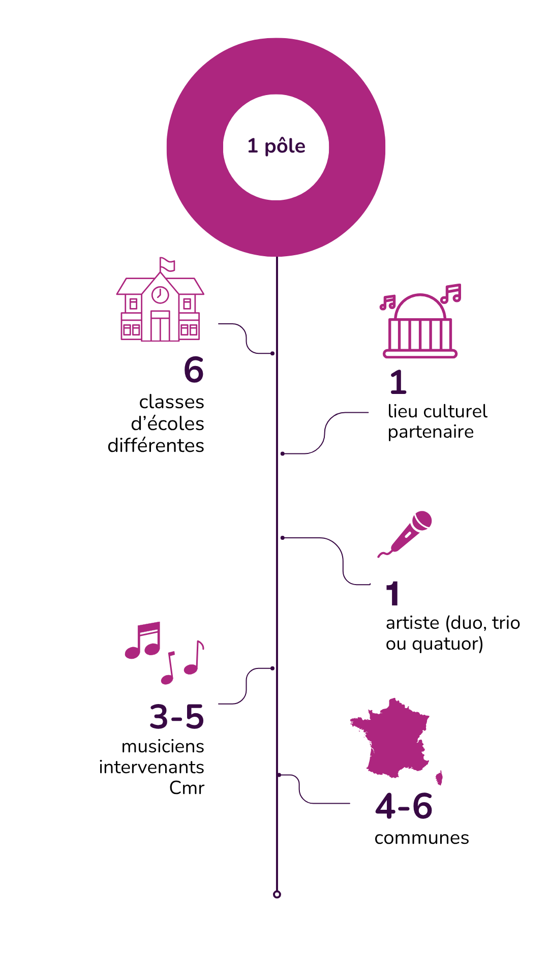 Les élèves participants réalisent une création musicale autour de l’univers – et avec – un artiste programmé par une structure partenaire du territoire.